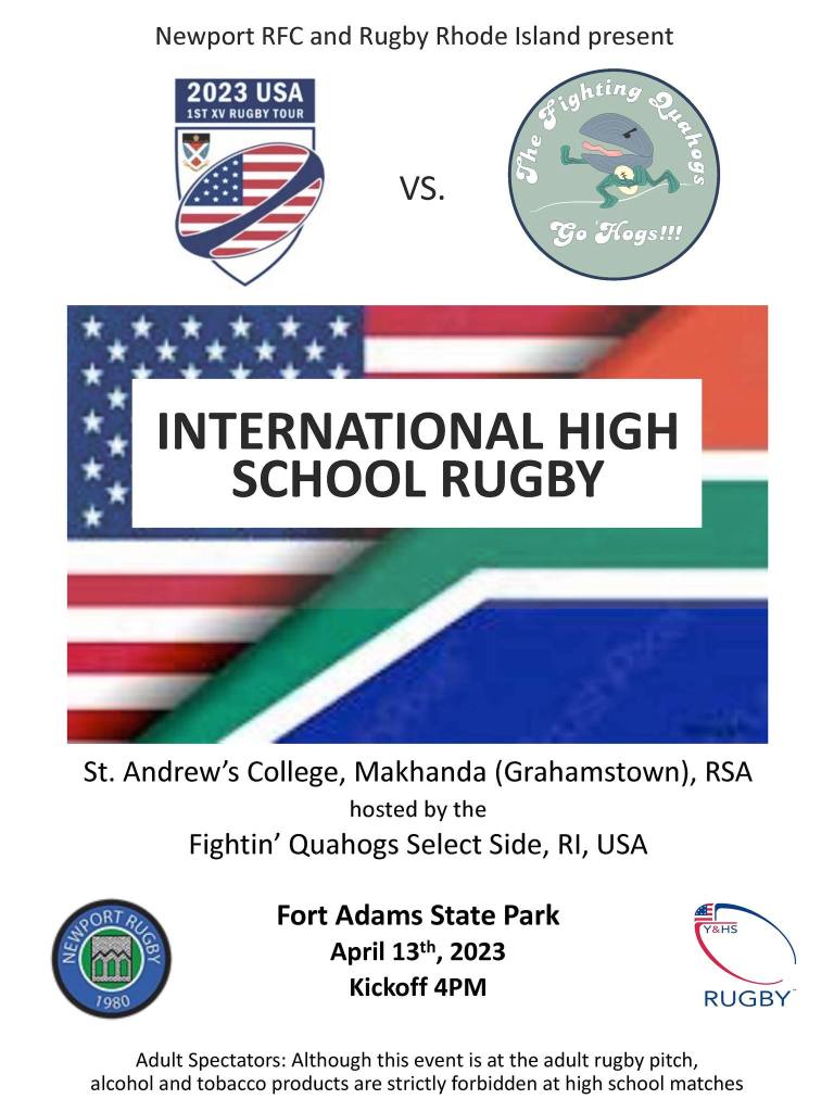 International High School Rugby Rugby Match – April 13 @ Fort Adams – Newport, RI. 4pm Kickoff!